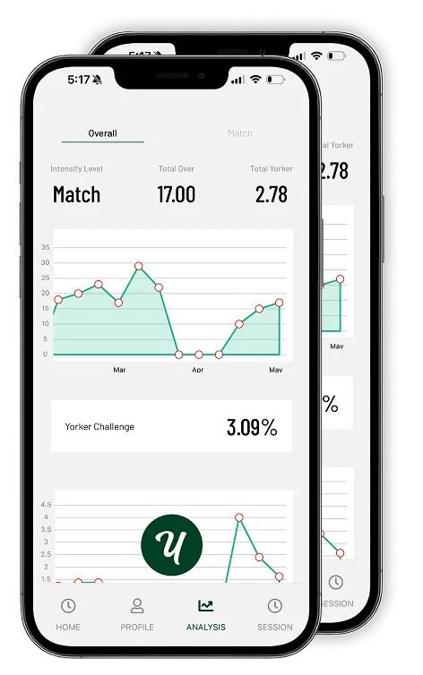 Your secret weapon to stay on top of your game. Yorker’s personal dashboard logs your sessions, tracks your loads, and delivers tailored insights for where you’re at in your journey. No more guesswork — just the edge you need to stay fit, firing, and bowling your best.